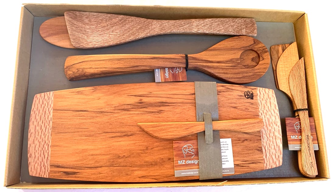 Med C Board, Curved Salad Servers (I), Curved Spatula (H2), Jam Spoon (H3), Cheese Knife Set (J2)